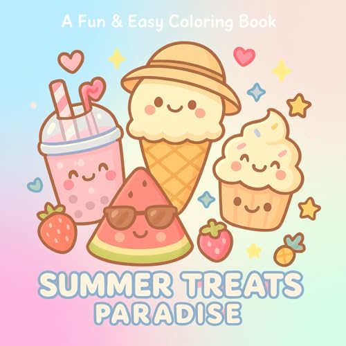 Summer Treats Paradise: A Kawaii Coloring Book Full of Cool & Cute Desserts Fun & Easy Coloring Pages for Kids, Teens, and Ice Cream Lovers