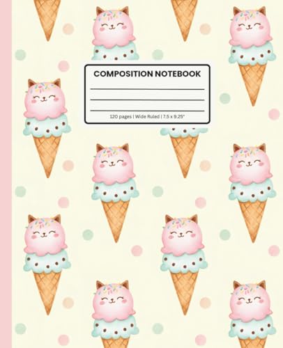 Cute Kawaii Ice Cream Composition Notebook – Wide Ruled, 7.5 x 9.25 Inches, 120 Pages, Soft Matte Cover: A Sweet and Fun Notebook for Writing, Journaling, and School