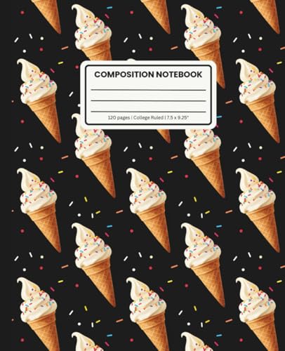 Vanilla Ice Cream with Sprinkles Composition Notebook – College Ruled, 7.5 x 9.25 Inches, 120 Pages, Soft Matte Cover: A Sweet and Fun Notebook for Writing, Journaling, and School