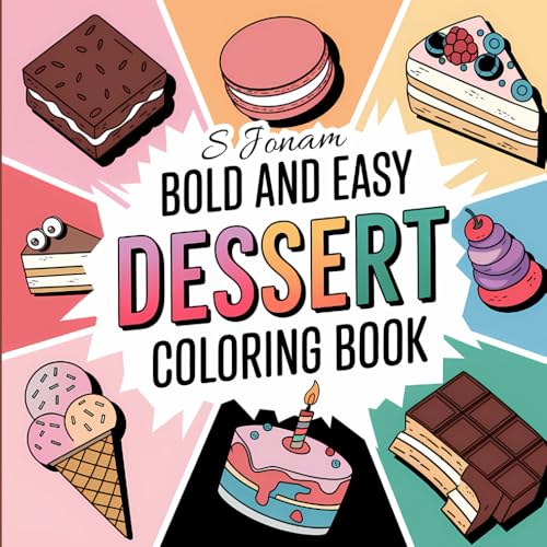 Bold and Easy Dessert Coloring Book: A Fun Coloring Book with Simple, Bold Designs of Chocolate, Cakes, Ice Cream and Sweet Treats