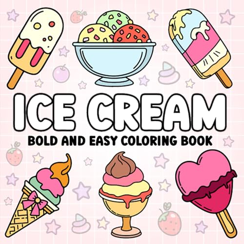 Ice Cream Bold and Easy Coloring Book: Sweet Simple Designs for Relaxation Featuring a Fun Variety of Delicious Frozen Treats