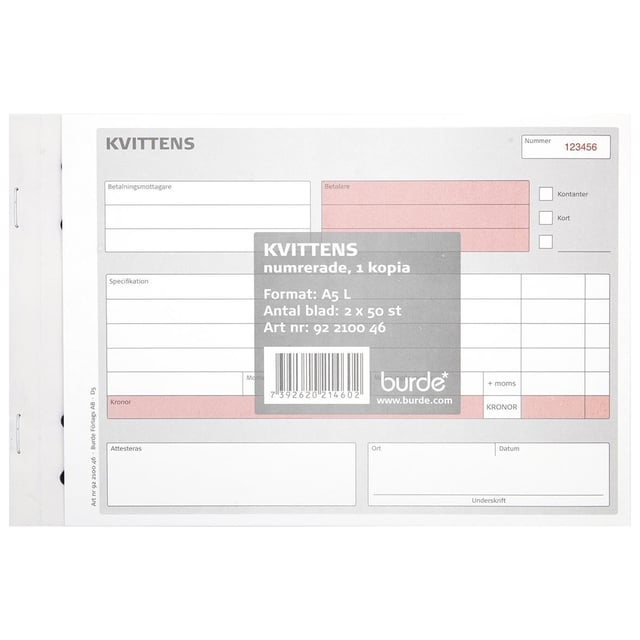 Kvittens A65 med kopia, 2x50 blad, 5st 5st