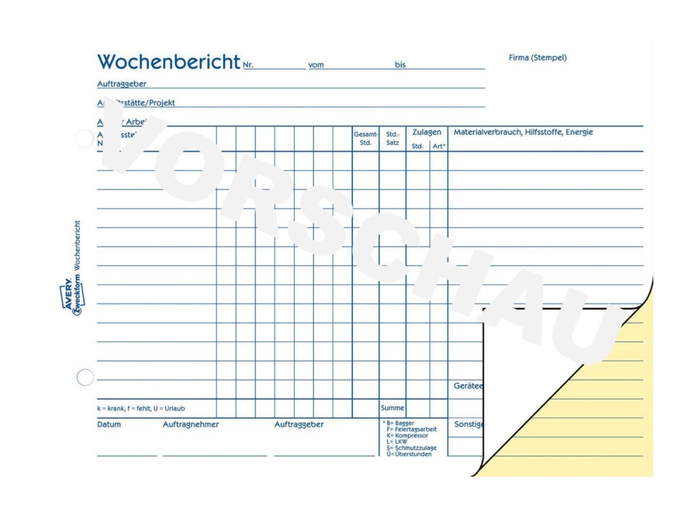 Avery Zweckform - Veckorapport - 40 Ark - A5 (148 X 210 Mm) - Liggande - Kopia - Självkopierande