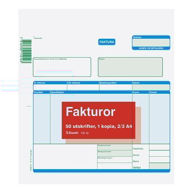 Faktura A4, med kopia, 2x50 blad, 5st 5st