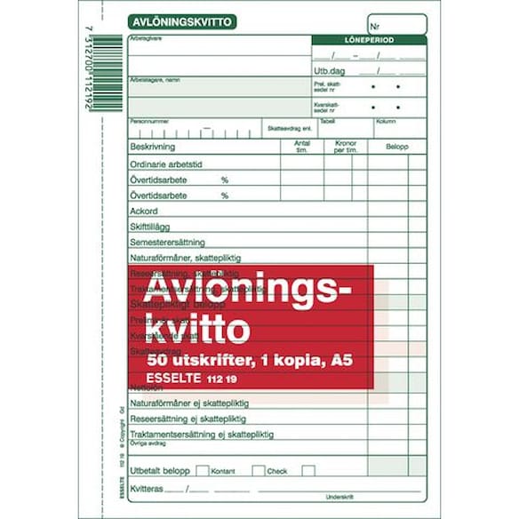 Avlöningskvitto A5 med kopia, 2x50 blad, 5st 5st