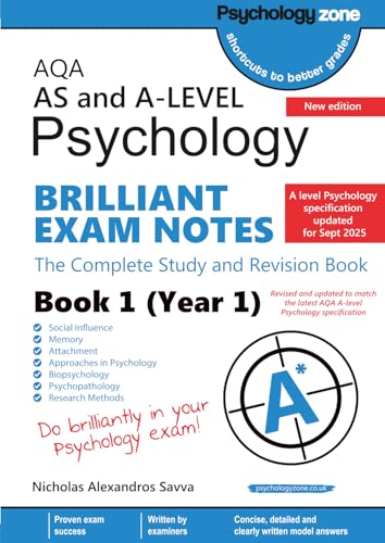 AQA A Level Psychology BRILLIANT EXAM NOTES Updated (Year 1 and AS ): The Complete Study and Revision Book (updated for 2025 specification)