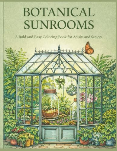Botanical Sunrooms: A Bold and Easy Coloring Book for Adults and Seniors: 45 Relaxing Terrarium Scenes, Lush Indoor Gardens, and Serene Glass Worlds for Stress Relief and Mindfulness