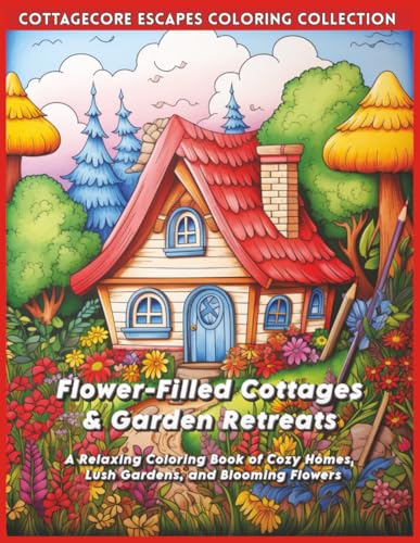 Flower-Filled Cottages & Garden Retreats: A Relaxing Coloring Book of Cozy Homes, Lush Gardens, and Blooming Flowers