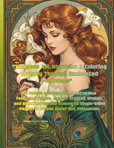 “Timeless Art Nouveau: A Coloring Journey Through Enchanted Gardens”: An Intricately Detailed Adult Coloring Book Featuring Overgrown Fauna and Lush Architecture