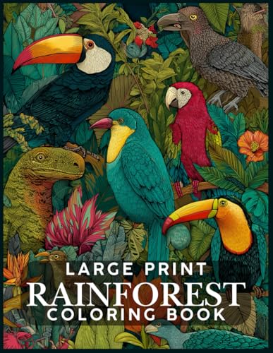 Large Print Rainforest Coloring Book: A calming rainforest coloring experience featuring parrots, sloths, jaguars, butterflies, and lush jungle scenes ... for mindfulness, creativity, and relaxation.