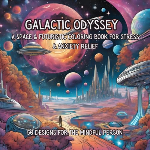 Galactic Odyssey: A Space & Futuristic Coloring Book for Stress & Anxiety Relief: 50 Intricate Cosmic Designs with Futuristic Cities, Alien Worlds & Grayscale Shading for Relaxation and Mindfulness