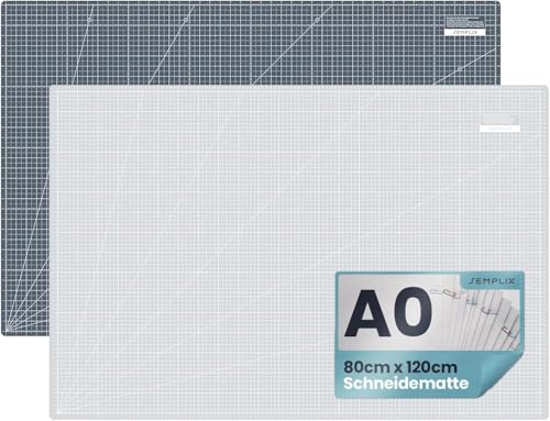 SEMPLIX Självläkande skärmatta A0-A4 – grön, rosa, grå, turkos, lila – perfekt för pyssel, sömnad och lappverk – tryckt på båda sidor – främre cm baksida tum mått (ljusgrå, A0)