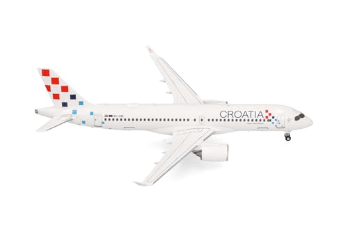 Herpa Flygplansmodell Croatia Airlines Airbus A220-300, miniatyr i skala 1:200, samlarobjekt, modell utan ställ, metall