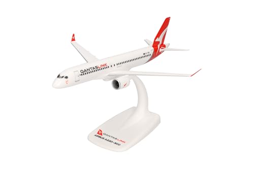 Herpa modellflygplan QantasLink Airbus A220-300, skala 1:200, klickmodell, samlarobjekt – flygplan med ställ, plastfigur