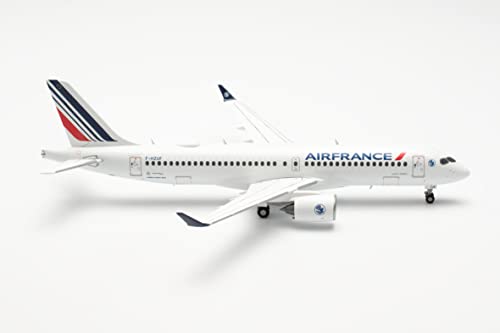Herpa modellflygplan Air France Airbus A220-300 – F-HZUA, skala 1:200, klickmodell, samlarobjekt – flygplan med ställ, plastfigur