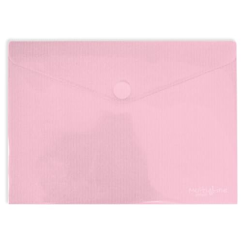 Grafoplás | Förpackning 5 plastkuvert A3 | Kardborreförslutning | Ljusrosa färg | Multiline | 33,5 x 24 cm | Genomskinligt randigt polypropen glas | Perfekt för ritningar och stora dokument