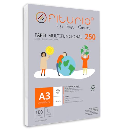 Förpackning med 100 vita DIN A3-blad, 250 g skrivarpapper. Multifunktionellt kopieringspapper för skola och kontor. Perfekt för laserskrivare, bläckstråleskrivare eller kopiatorer – Ofituria