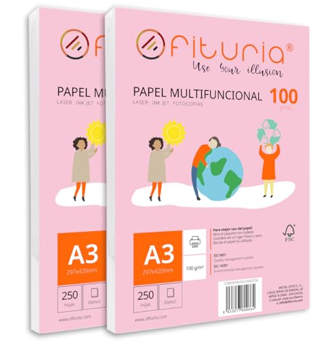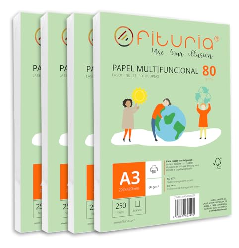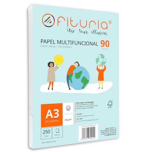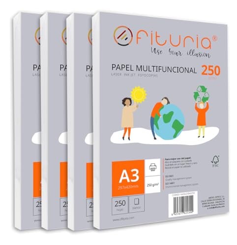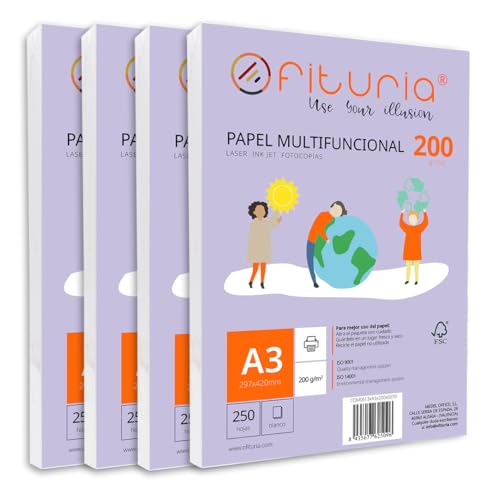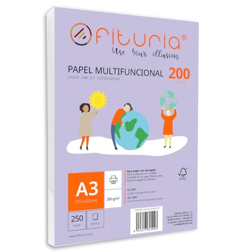 Förpackning med 250 vita DIN A3-blad, 200 g skrivarpapper. Multifunktionellt kopieringspapper för skola och kontor. Perfekt för laserskrivare, bläckstråleskrivare eller kopiatorer – Ofituria