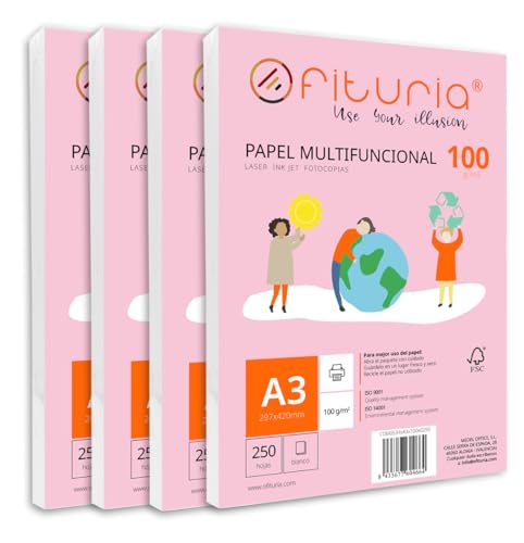 A3-foliepaket på 100 gr med 1 000 vita ark, multifunktionspapper för skol- och arbetsmiljöer – perfekt för laserskrivare, bläckstråleskrivare eller kopiatorer - Ofituria
