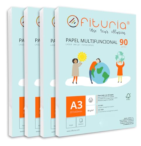 90 gr A3-foliepaket med 500 vita ark, multifunktionellt papper för skol- och arbetsmiljöer – perfekt för laserskrivare, bläckstråleskrivare eller kopiatorer - Ofituria