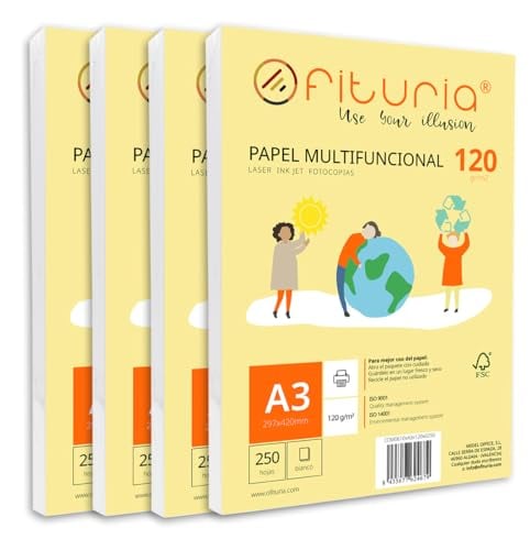 A3-foliepaket på 120 gr med 1 000 vita ark, multifunktionspapper för skol- och arbetsmiljöer – perfekt för laserskrivare, bläckstråleskrivare eller kopiatorer - Ofituria