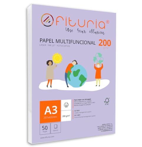 Förpackning med 50 vita DIN A3-blad, 200 g skrivarpapper. Multifunktionellt kopieringspapper för skola och kontor. Perfekt för laserskrivare, bläckstråleskrivare eller kopiatorer – Ofituria
