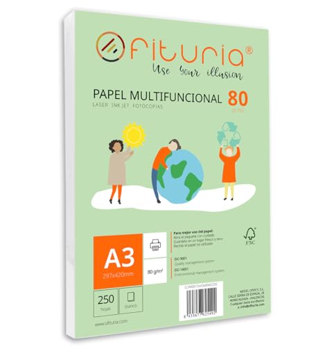 A3-foliepaket på 80 gr med 250 vita ark, multifunktionspapper för skol- och arbetsmiljöer – perfekt för laserskrivare, bläckstråleskrivare eller kopiatorer - Ofituria