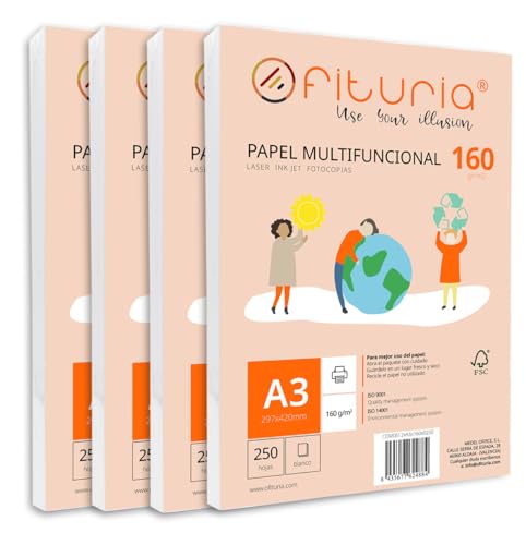 A3-foliepaket på 160 gr med 1 000 vita ark, multifunktionspapper för skol- och arbetsmiljöer – perfekt för laserskrivare, bläckstråleskrivare eller kopiatorer - Ofituria