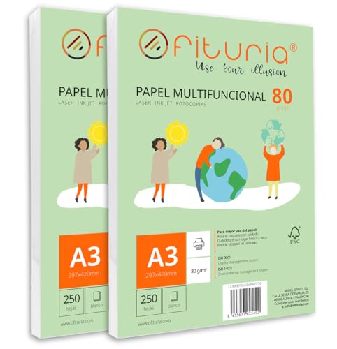 80 gr A3-foliepaket med 500 vita ark, multifunktionellt papper för skol- och arbetsmiljöer – perfekt för laserskrivare, bläckstråleskrivare eller kopiatorer - Ofituria