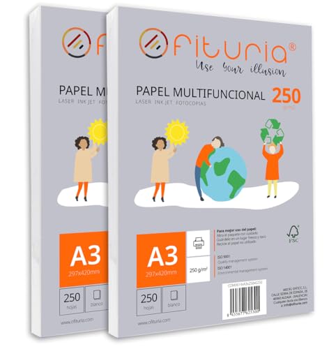 A3-foliepaket på 250 gr med 500 vita ark, multifunktionellt papper för skol- och arbetsmiljöer – perfekt för laserskrivare, bläckstråleskrivare eller kopiatorer - Ofituria