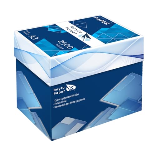 RAYLU PAPER - Folios A3 80gr 2500 Premium Multipurpose pappersark för laserskrivare, Inkjet och kopiatorer, för kontor och hem