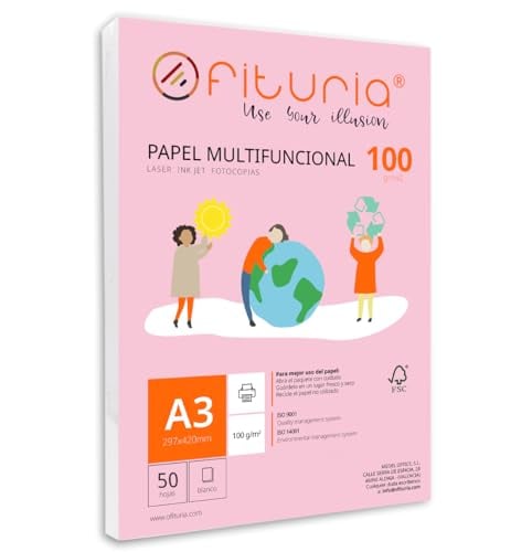 A3 de 120 gr papperstjocklek med 50 vita ark, multifunktionellt skrivarpapper idealiskt för skol- och affärsmiljöer. Perfekt för laserskrivare, injektion eller kopiator. Ofituria