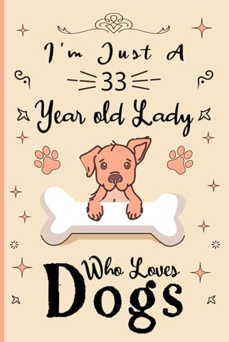 I'm Just A 33 Year Old Lady Who Loves Dogs: Birthday Gift For Girls/ Dog Notebook Gift For Girls: Dog Notebook / Journal Gift, 120 Pages, 6x9, Soft Cover, Matte Finish