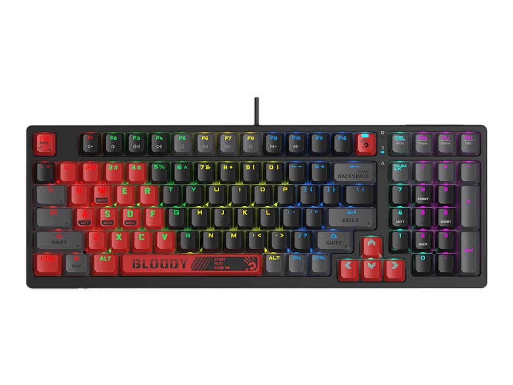 Bloody S98 Sports - Tangentbord - Bakgrundsbelyst - Usb-C - Tangentbrytare: Blms Red Plus Switch (Hot-Swapbar) - Sportig Röd