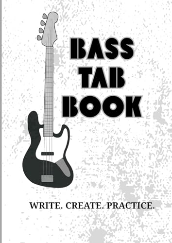 BASS TAB BOOK: A4 SIZE-170 page, Bass Tab Notebook. WRITE. CREATE. PRACTICE. Best for writing music and lessons.