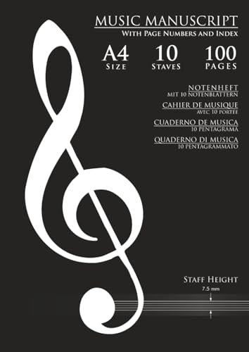 Music Manuscript: Staff Paper Notebook with 10 Staves per Page | 100 Numbered pages with Table of Contents (50 Sheets) | Large Paper Size | A4 - 8.27" x 11.69" (21 x 29.7 cm)
