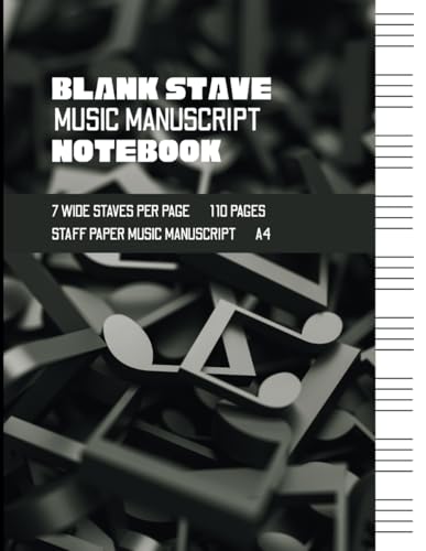Blank Stave Music Manuscript | Music Notebook: 7 wide staves per page | 110 staff pages | A4 music notebook | 8.5"×11"
