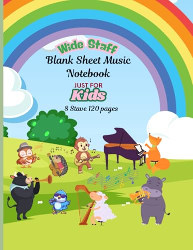 A4 Sheet Music Manuscript Paper for Kids: 8 Staves/120 pages/Wide Staff