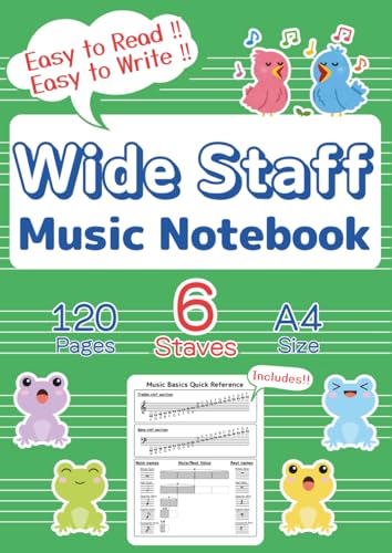 Kids Wide Staff Music Notebook - A4 Size -: Blank Staff Paper for Beginners and All Ages with Music Basics Reference,120pages, Wide 6 Staves per page,Green