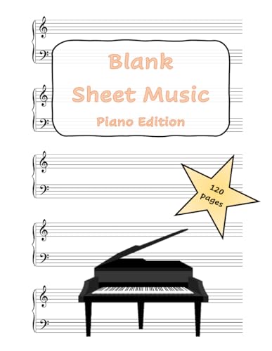 Blank Sheet Music for Piano: Book | Notebook | Journal | A4 Size | 120 Pages: 5 Staves per Page (Double Stave) with Treble and Bass Clefs for Piano