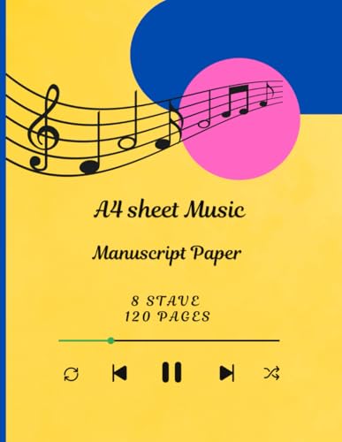 A4 Sheet Music Manuscript Paper: 8 Stave - 120 pages - Wide staff