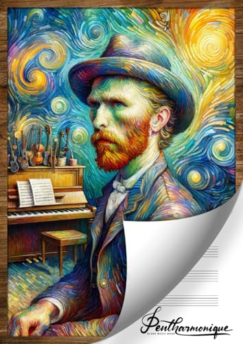 Cuaderno de música Pentagrama: Vincent Van Gogh, Autorretrato | Cover-Art | Con 12 pentagramas por página para escribir, tomar notas y componer | Sheet Music Notebook | 110 páginas | Formato A4