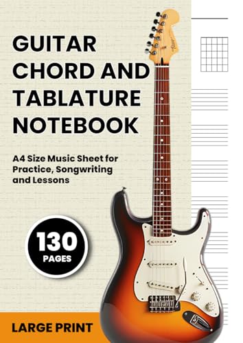Guitar Chord and Tablature Notebook: Large Print 130 Pages of Chord Boxes & Guitar Tab – Blank Music Notebook for Guitarists, A4 Size Music Sheet for Practice, Songwriting and Lessons