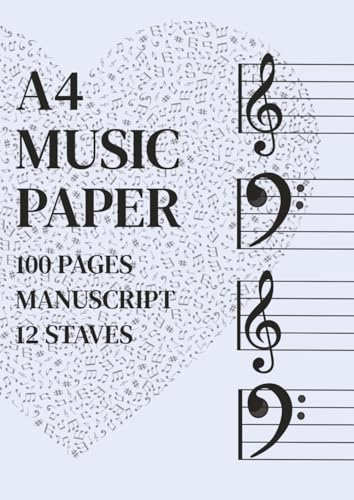 A4 Music Paper: A4 Music Manuscript Book - Printed 12 Stave - 100 Blank Page to Write you Own Music
