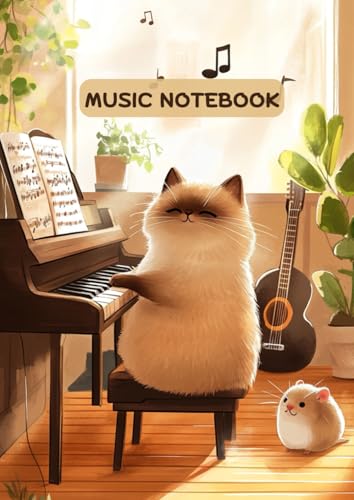 Siamese Cat & Hamster Music Notebook – Piano & Creativity Combined: Ideal for composers, pianists, students, and music lovers, Size: A4 (8.27 x 11.69 inches) and 120 pages.