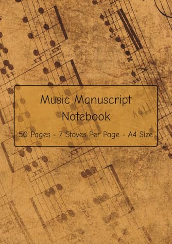 Music Manuscript Notebook: Wide Staff Music Manuscript Paper | A4 Music Sheet | Blank Staff Paper Sheet Music | 50 Pages | A4 Size