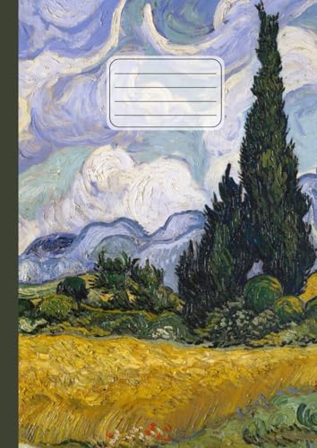 Cuaderno de música Pentagrama: Vincent Van Gogh, Campo de trigo con cipreses | Cover-Art | Con 12 pentagramas por página para escribir, tomar notas y ... Music Notebook | 110 páginas | Formato A4