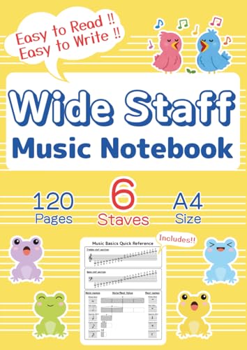 Kids Wide Staff Music Notebook - A4 Size -: Blank Staff Paper for Beginners and All Ages with Music Basics Reference,120pages, Wide 6 Staves per page,Yellow