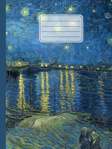 Quaderno di Musica Pentagrammato: Vincent Van Gogh, Notte stellata sul Rodano | Con 12 righi per pagina per scrivere, prendere appunti e comporre | Sheet Music Notebook | 110 pagine | Formato A4