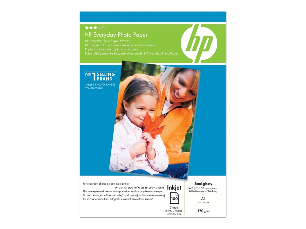 Hp Everyday Semi-Gloss Photo Paper - Halvblank - A4 (210 X 297 Mm) - 175 G/M² - 100 Ark Fotopapper - För Officejet Pro K550, K850 Photosmart 335, 385, 73Xx, 7960, A433 Psc 1110, 1410, 500